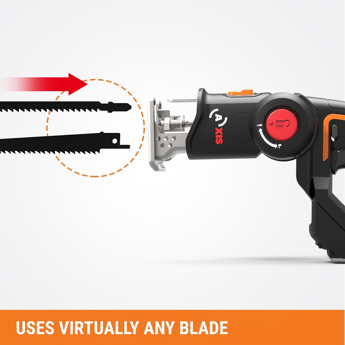 [USE ANYBODY'S BLADES] Though Worx blades are pretty great, you can go down to the hardware store and pick up any standard reciprocating saw and t-shank saw blades to use in this tool